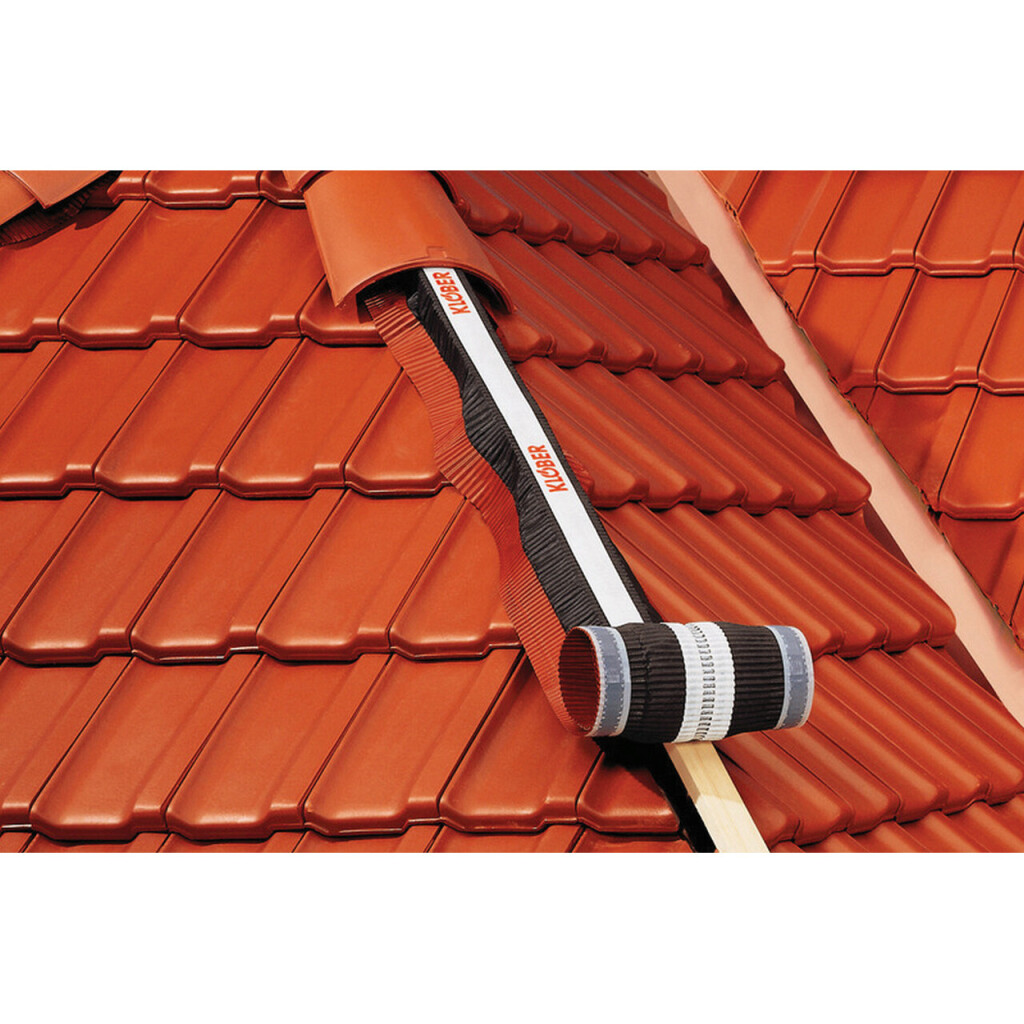 Als robuste Allround-Lösung für First- und Grat ist Roll-Fix für nahezu jede Dacheindeckung geeignet. Aufgrund ihrer Breitenvielfalt von 295 mm, 320 mm oder 390 mm kann die wetterfeste, UV-beständige und hochventilierende Firstrolle sowohl ebene als auch stark profilierte Pfannenformen passgenau abdecken. Die hohe Wassersäule von ≥ 65 mm sorgt dabei für einen jederzeit optimalen Schutz gegen Flugschnee oder Regeneintrieb. Darüber hinaus besitzt Roll-Fix ein Nagelband für optimale Ausrichtung und ermöglicht eine schnelle, unproblematische Verlegung. Der in die Plissierung eingebettete haftstarke Butylkleber ermöglicht eine gegen Windeinflüsse sichere Fixierung des Metall-Seitenstreifens.