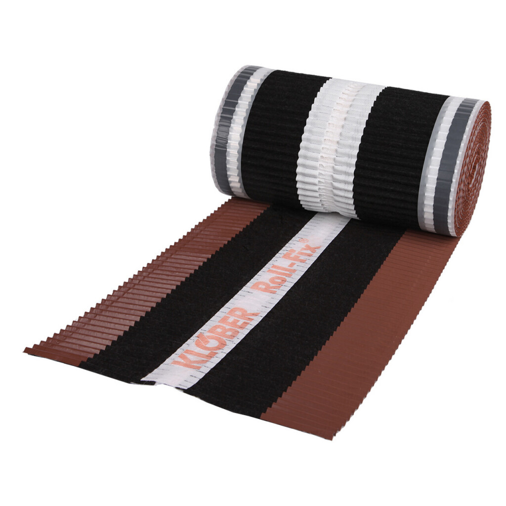 Als robuste Allround-Lösung für First- und Grat ist Roll-Fix für nahezu jede Dacheindeckung geeignet. Aufgrund ihrer Breitenvielfalt von 295 mm, 320 mm oder 390 mm kann die wetterfeste, UV-beständige und hochventilierende Firstrolle sowohl ebene als auch stark profilierte Pfannenformen passgenau abdecken. Die hohe Wassersäule von ≥ 65 mm sorgt dabei für einen jederzeit optimalen Schutz gegen Flugschnee oder Regeneintrieb. Darüber hinaus besitzt Roll-Fix ein Nagelband für optimale Ausrichtung und ermöglicht eine schnelle, unproblematische Verlegung. Der in die Plissierung eingebettete haftstarke Butylkleber ermöglicht eine gegen Windeinflüsse sichere Fixierung des Metall-Seitenstreifens.
