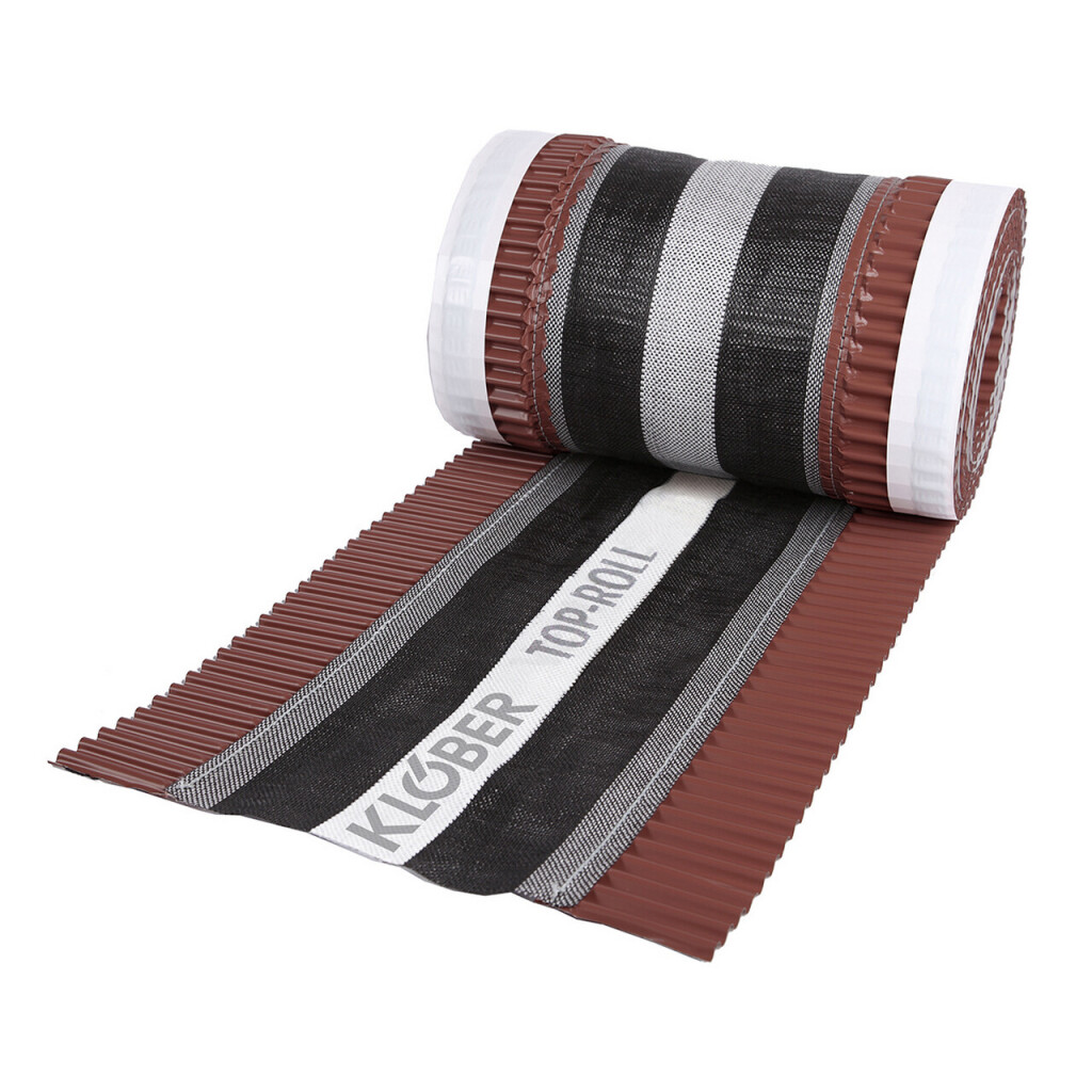 Die Gittergeweberolle Top-Roll zeichnet sich besonders durch hohe Lüftungseigenschaften aus. Aufgrund der Breitenvielfalt von 210 mm, 310 mm und 390 mm in Verbindung mit einer Dehnreserve von 30% im Seitenstreifen ist die Rolle flexibel für flach bis stark profilierte Dachsteine bzw. Dachziegel geeignet. Der AluminiumSeitenstreifen ist mit dem Mittelteil verklebt und zusätzlich vernäht, sodass die Rolle eine sehr hohe Reißfestigkeit hat. Die robuste Gittergewebestruktur schützt den First- bzw. Gratbereich vor Schnee- und Regeneintrieb. Das Nagelband sorgt für eine optimale Ausrichtung auf der Firstlatte und vereinfacht die Verlegung.