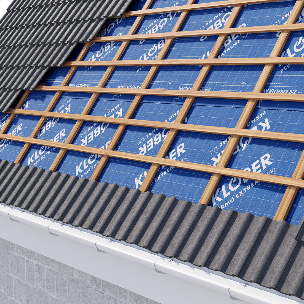 Permo Extreme 200 SK ist die robuste Bahn mit Spezialbeschichtung für maximale Sicherheit. Mit der hochdiffusionsoffenen, wasserabweisenden Spezial-Beschichtung hält sie extremen Belastungen stand. Die rutschhemmende Beschichtung gewährleistet eine sehr hohe Wasserdichtigkeit und Temperaturbeständigkeit. Dadurch eignet sich die Bahn auch zur Verwendung unter Solarmodulen. Permo Extreme 200 SK entspricht der Klasse UDB-A/USB-A des ZVDH und ist für die Verwendung als Behelfsdeckung geprüft und zugelassen. Der integrierte Klebebereich mit Dichtrand ermöglicht eine schnelle und sichere Lösung zur Erstellung winddichter Verklebungen.