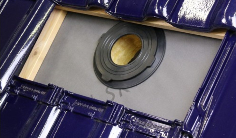 Speziell für kritische Durchdringungen wie zum Beispiel Dunstrohre oder Kabel und Leitungen von Solaranlagen gibt es dichtende Manschetten.