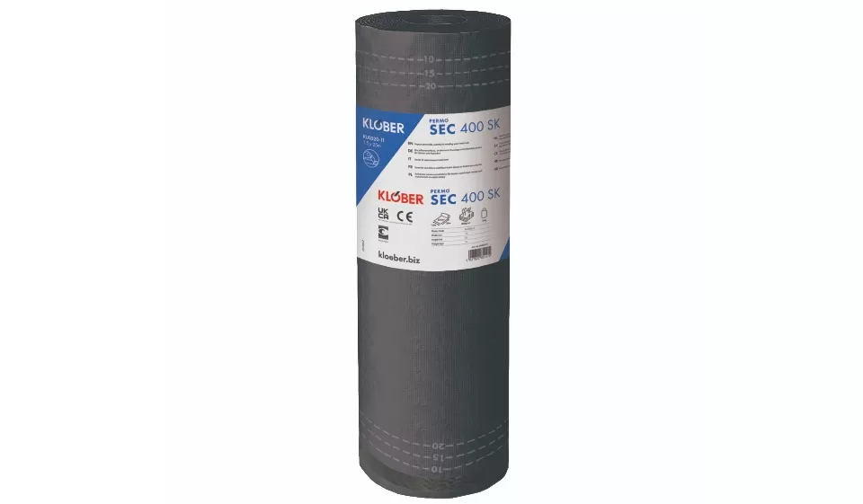 Im Bereich des Standardsortiments bietet die Unterdeckbahn Permo Ultra 145 bzw. Ultra SK den Einstieg in die Klasse A. Ultra 145 (bisherige Bezeichnung Easy 145) ist die mit einem sd-Wert von 0,03 m hochdiffusionsoffene Unterdeckbahn von Klöber. Der Name ist selbsterklärend: Ultra 145 steht für das leichte Gewicht von 145 Gramm pro Quadratmetern. Die Bahn kann gemäß EN 13859-1 bzw. EN 13859-2 als Dach- und als Fassadenbahn eingesetzt werden. Die dreilagige Vlies-Folien-Kombination auf Basis Polyolefin ist hydrophobiert. Auf der Unterseite ist ein spezielles, stabiles Spinnvlies aufkaschiert. Das ermöglicht eine problemlose Verlegung auf ungeschalten ebenso wie auf geschalten Dächern, aber auch den Einsatz unter Schiefer oder anderen Bedachungsmaterialien in Direktauflage. Permo Ultra 145 gibt es mit und ohne Selbstklebestreifen. Die Doppel-Selbstklebestreifen bieten da, wo ein erhöhtes Anforderungsniveau gilt, zum Beispiel bei Dachgeschossen, die zu Wohnzwecken genutzt werden, doppelte Sicherheit und ermöglichen eine winddichte und energieeffiziente Verklebung, auch bei Feuchtigkeit und Staub. Die rote Banderole um das hellgraue Vlies sorgt für leichte Erkennbarkeit im Lager.