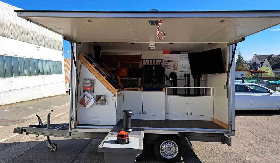 Zwei nagelneue Anhänger, voll ausgerüstet mit Zubehör rund um die Themen Flachdach, Metalldach, Steildach sowie Solardach rollen ab Frühling 2023 wieder durchs Land.
