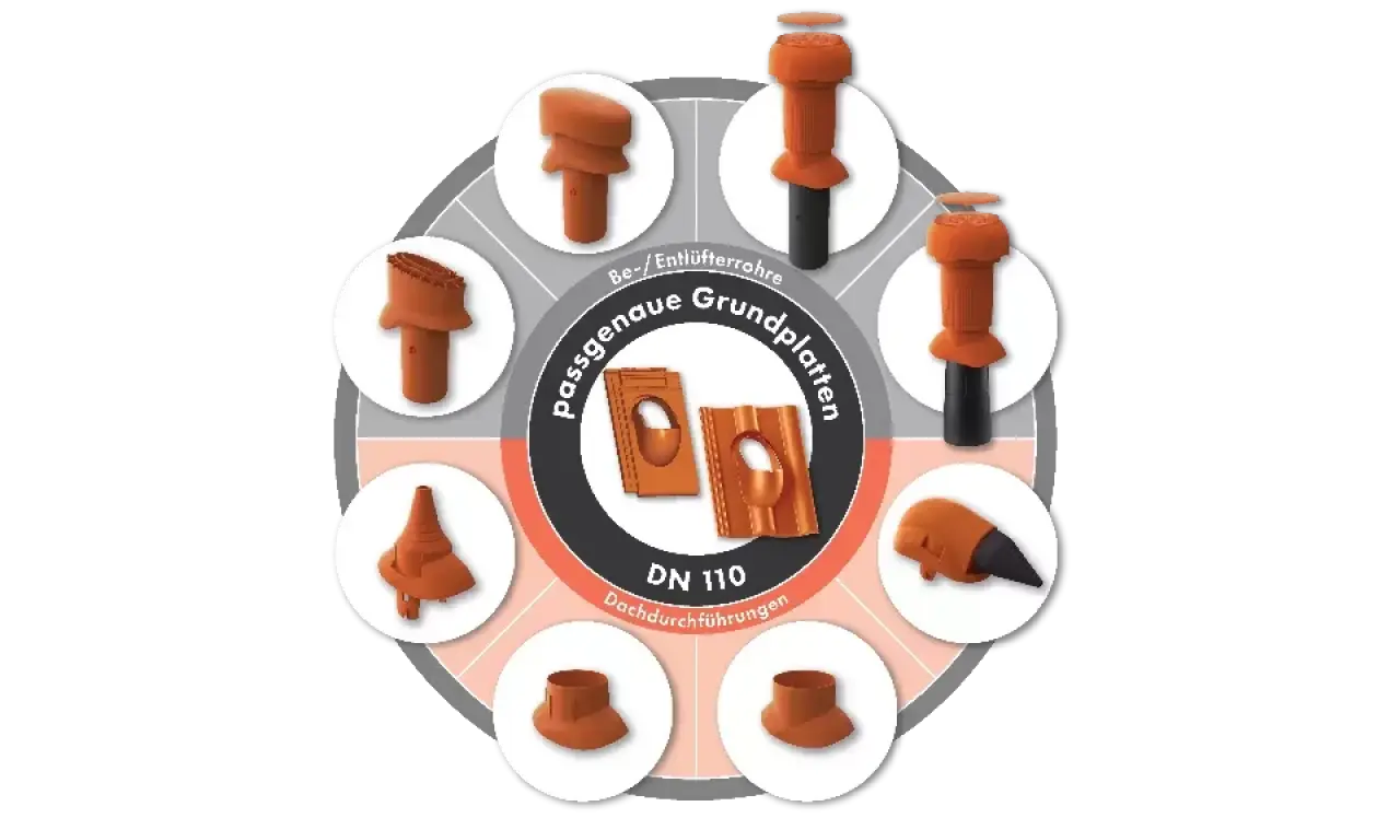 Wie fast überall gilt auch hier: Die Basis muss stimmen. Die Basis für Be- und Entlüfterrohre sowie Abgasrohre oder Antennendurchgänge und andere Kabeldurchführungen sind Grundplatten mit einer standardisierten Öffnung, auf die passgenau das gewünschte Funktionsmodul aufgesetzt werden kann. Sie bilden das Grundgerüst für diese Steildachdurchgänge. So gibt es passgenaue Grundplatten aus versprödungsfreiem, UV-unempfindlichem, verrottungsstabilem, witterungs-, frost- und alterungsbeständigem Spezialkunststoff ASA/ABS. Dieses neue Material verfügt nicht nur über sehr gute Materialeigenschaften wie höhere Farbbeständigkeit, bessere Formbeständigkeit, verbesserte Hitzeeigenschaften oder eine kratzfestere Oberfläche. Vor allem ist der neue Kunststoff noch einmal deutlich umweltfreundlicher und nachhaltiger. Er ist 100% frei von schädlichem Blei und Cadmium und weichmacherfrei, wodurch zum Beispiel Bleiauswaschungen, die das Grundwasser kontaminieren, der Vergangenheit angehören.