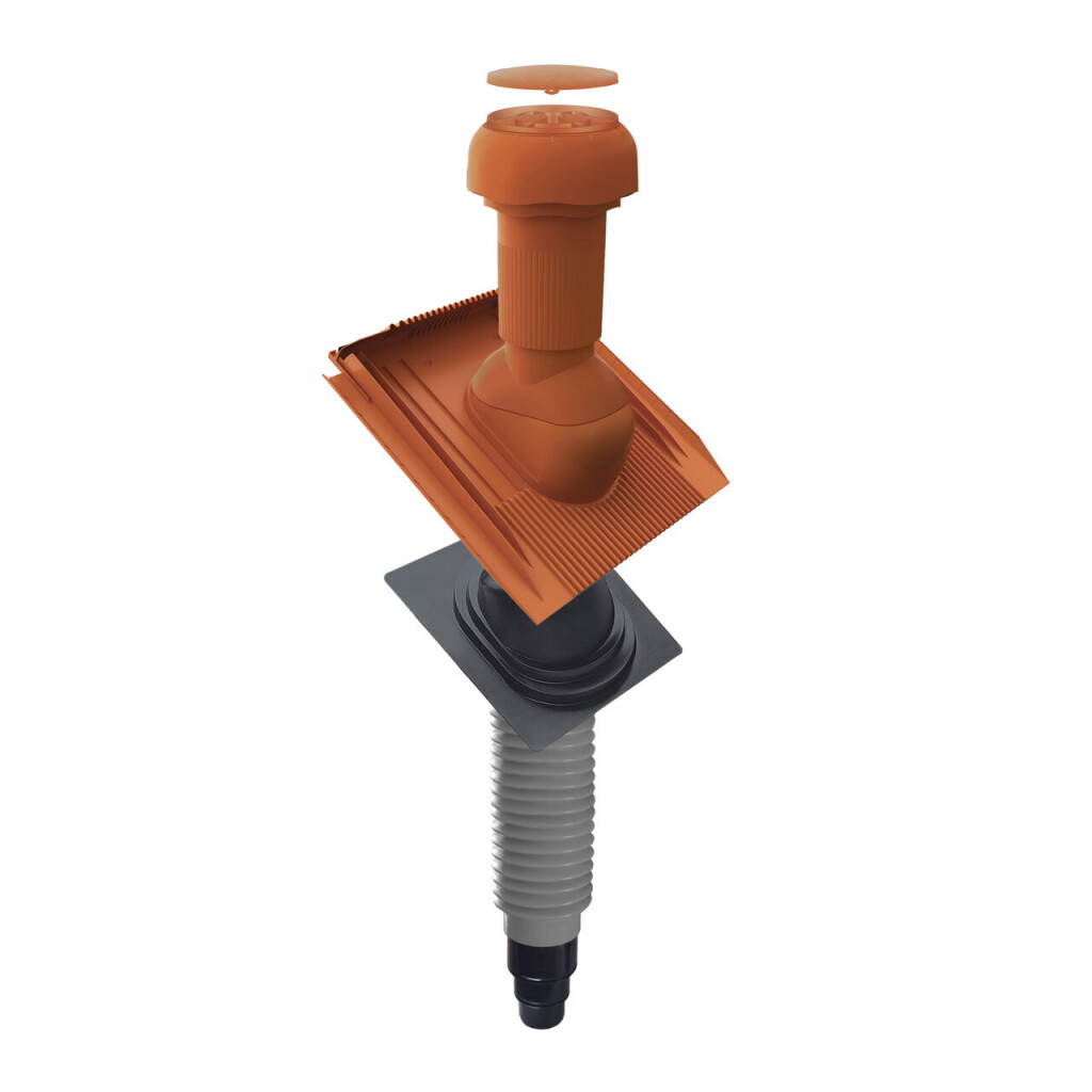 Das universelle Set ermöglicht eine effektive Be-/Entlüftung von Räumen oder Abwasserrohrleitungen. Die aerodynamisch optimierte Entlüftung durch Rohrgeometrie, Luftleitring und Regenhaube reduziert Verwirbelungen auf ein Minimum und stellt eine effektive Abluftleistung insbesondere bei ventilatorunterstützter Abluft sicher. Anfallendes Kondensat wird mittels einer Kondensatrinne sicher auf die Außenseite oberhalb der Dacheindeckung abgeführt. Das Set enthält jeweils eine universelle Grundplatte, ein Be- und Entlüfterrohr, einen Flex-Anschlussschlauch in der jeweiligen Nennweite und eine Dunstrohrmanschette zur Herstellung einer regensicheren und winddichten Dachdurchgangslösung.