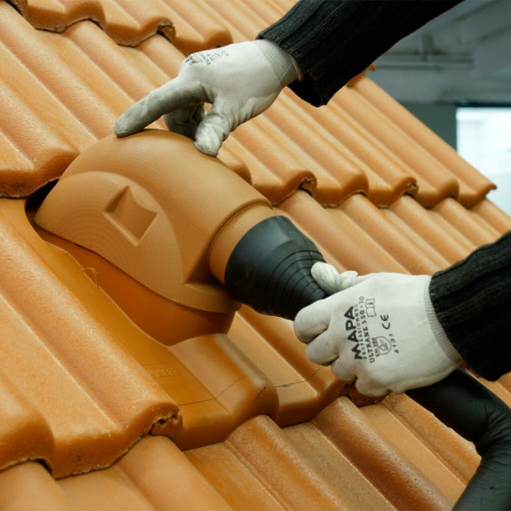 Der Venduct Solaraufsatz ist die optimale Lösung zur regensicheren Durchführung von Solarleitungen und Kabelbündeln, insbesondere von Solarthermieleitungen. Durch die einzigartige Form und in der Kombination mit einer elastischen EPDM-Manschette wird die Durchführung dicht umschlossen und verhindert dadurch das Eindringen von Schlagregen. In Kombination mit den Venduct Grundplatten DN 110 ist die Solardurchführung passend für über 200 Pfannen-Modelle.